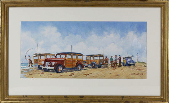 John Hutchinson Watercolor on Paper, “Surfcasters at Great Point”