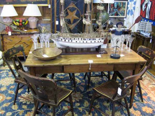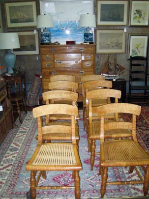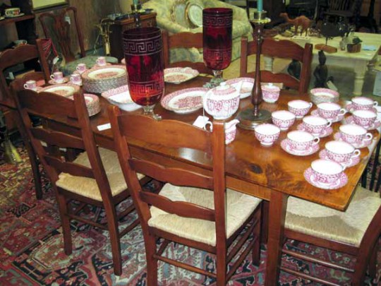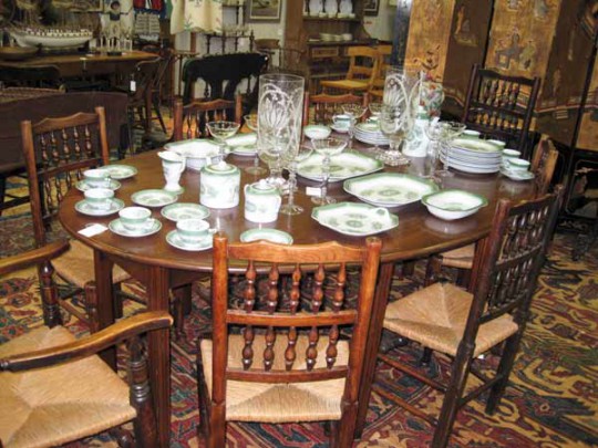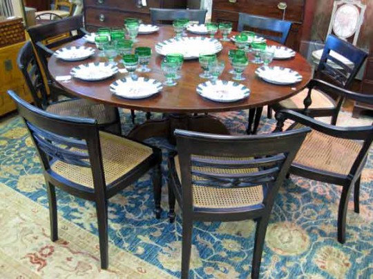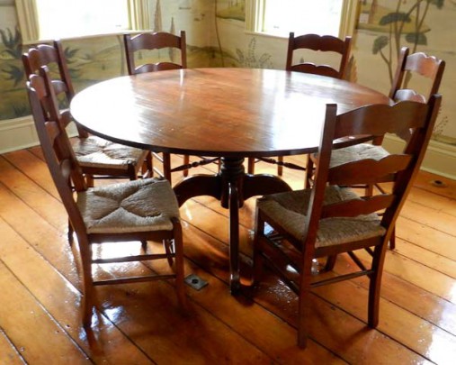 Round Single Pedestal Dining Table, 6 Rush Seat Ladder Back Dining Chairs