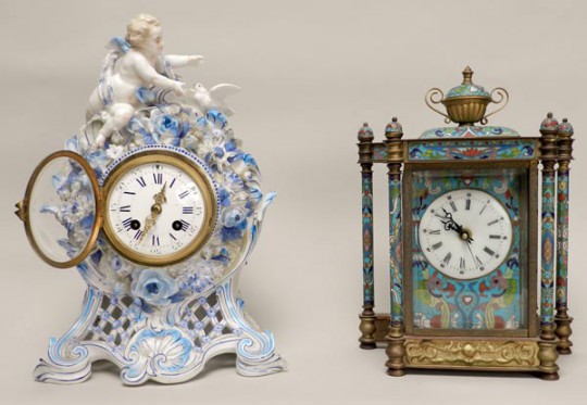 Dresden Style Porcelain Mantle Clock, Chinese Cloisonne Mantle Clock