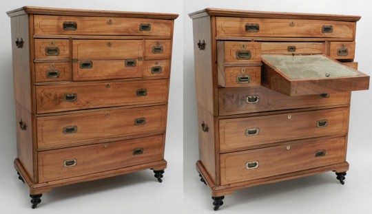 19th Century Dublin Mahogany Two-Part Brass Bound Campaign Chest of Drawers