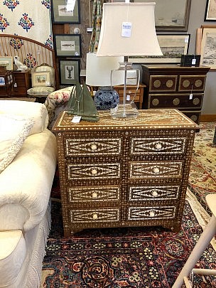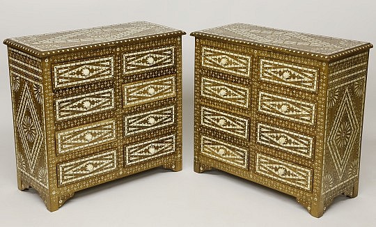 Pair of Elaborated Bone Inlaid and Studded Teak Chest of Drawers