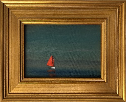 Robert Stark Jr. Oil on Canvas “Red Sail at Dusk, Polpis Harbor”