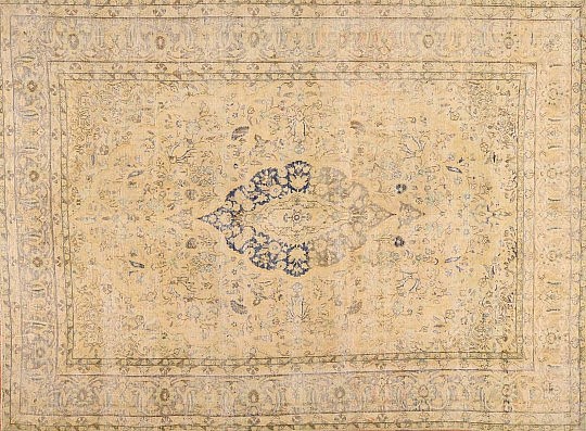 Vintage Washed Ivory Kerman Carpet