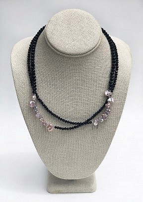 Black Spinel and Baroque Mauve Pearl Necklace