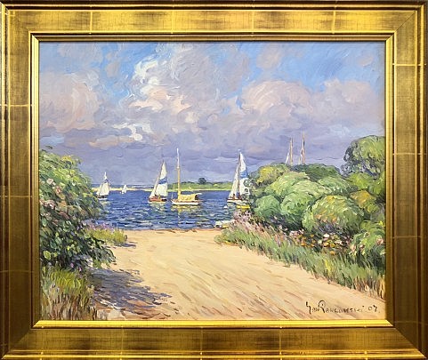 Jan Pawlowski Oil on Canvas “Sailboats Rounding Brant Point”