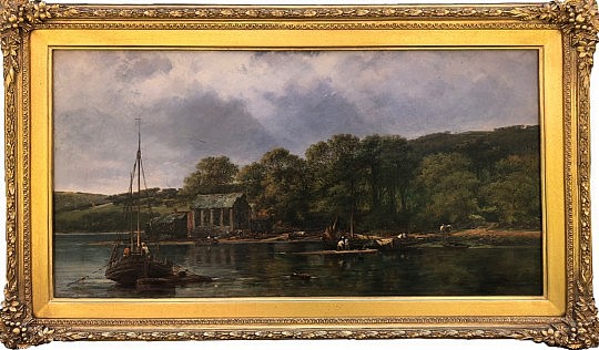 19th Century Oil on Board “River Landscape”