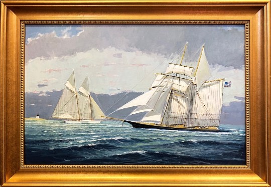 William W. Lowe Oil on Linen “Topsail Schooner Sailing into Port”