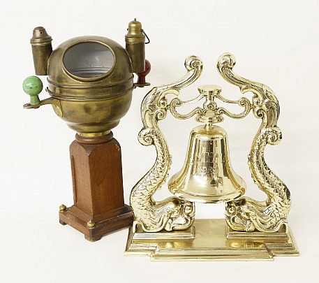 Mariner’s Table-Top Binnacle Compass & Brass Dolphin Ship’s Bell