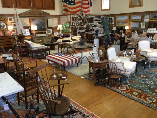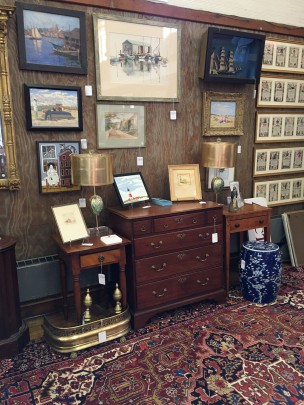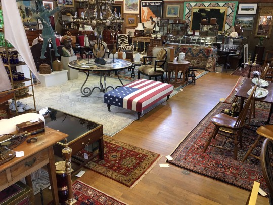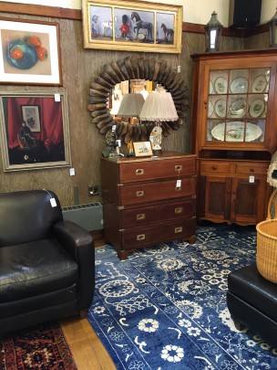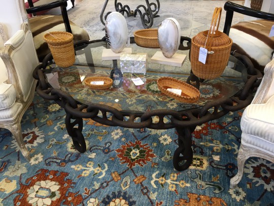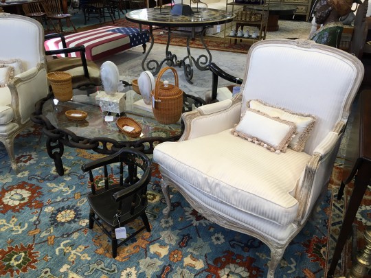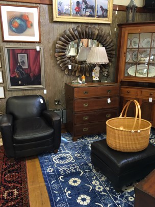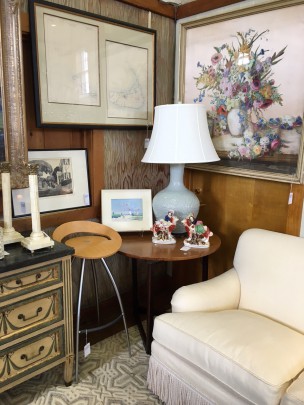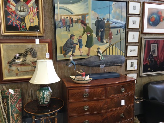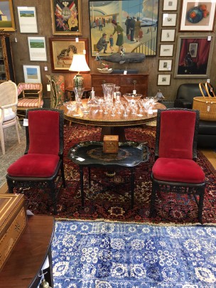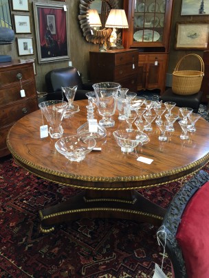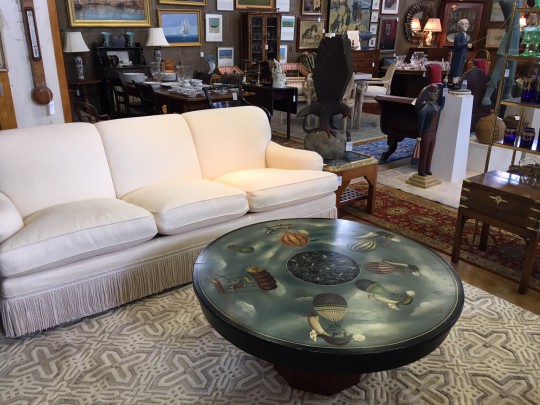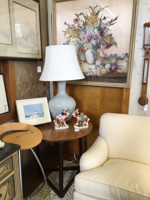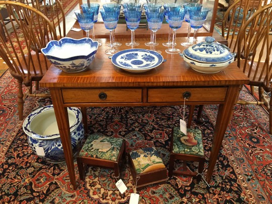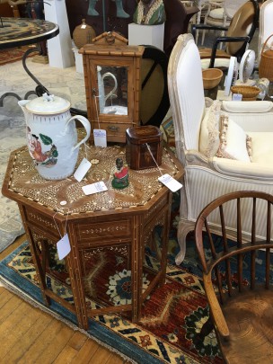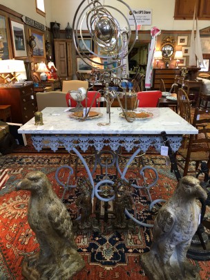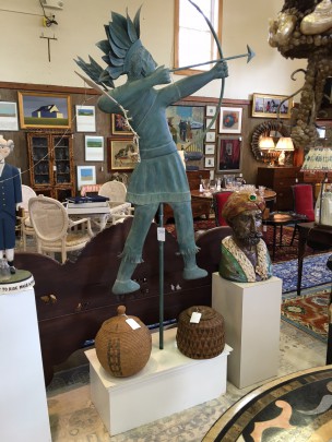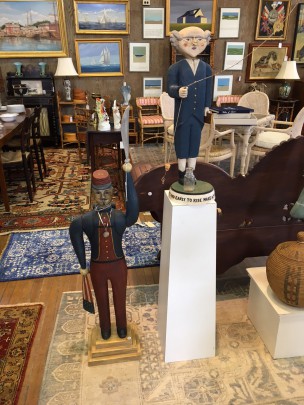 French Baker’s Table & Chris Flesher Vintage Carved Benjamin Franklin Figure