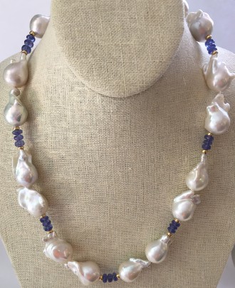 15mm-26mm White Fresh Water Baroque Pearl & Tanzanite Necklace