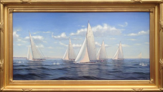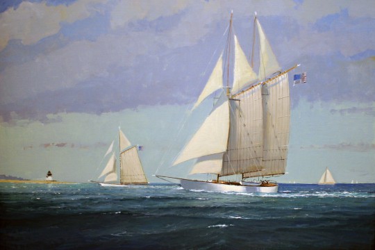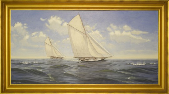 William W. Lowe “Schooners Arriving Home – Nantucket” Oil on Linen Canvas