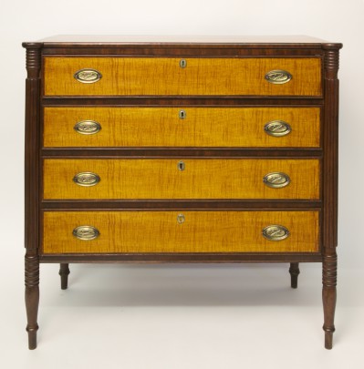 19th Century American Sheraton Mahogany & Tiger Maple Four Drawer Chest