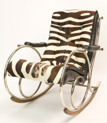 Contemporary Chrome and Hide Upholstered Rocking Chair