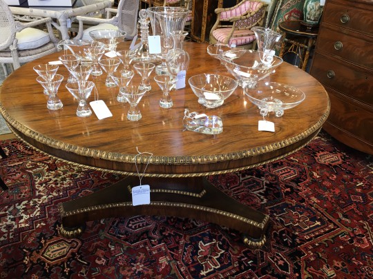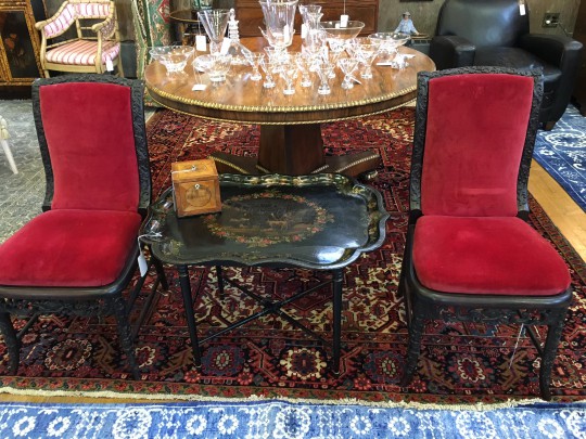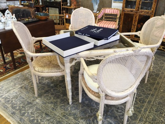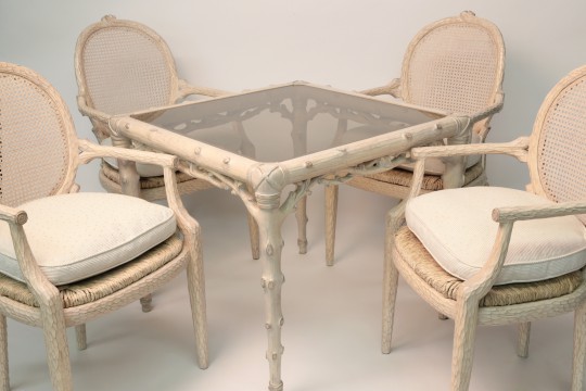 Chip Carved Glass Top Bridge Table and Four Chairs