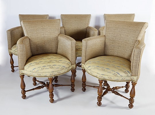 Five “Southwood” Upholstered 5-Leg Armchairs