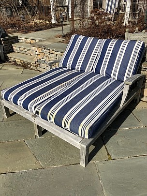 Two Gloster Teak Double Wide Chaise Lounges