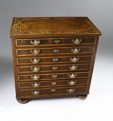 Diminutive English Oyster Walnut Collector’s Bureau
