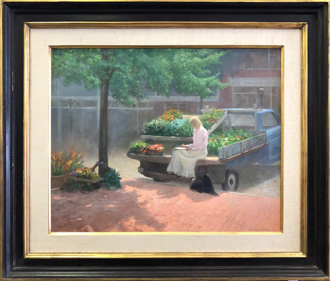 Douglas Flackman Oil on Canvas “Nantucket Main Street Flower Stand”