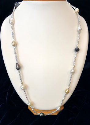 9mm x 10mm Multi-Color South Sea, Tahitian and Keshi Pearl Necklace