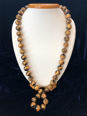 16mm Tiger’s Eye Gold Engraved Bead Necklace