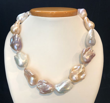 Fine 25mm x 32mm Multi-Color Baroque Fresh Water Pearl Necklace
