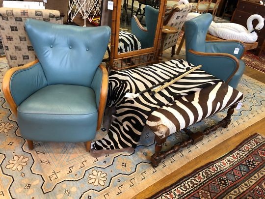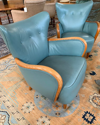 Pair Art Deco Green Leather and Button Back Club Chairs