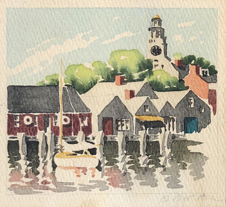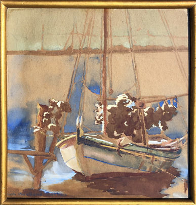 Ruth Haviland Sutton Watercolor on Artist Board “Still Docked”