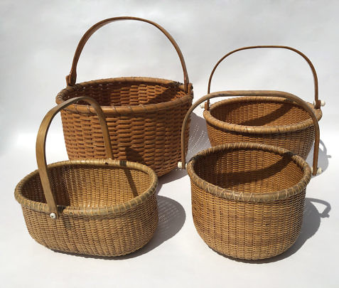 Group of Vintage O.L. Whitamore Oval Swing Handle Nantucket Baskets