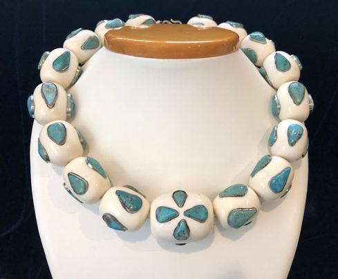White Bakelite and Turquoise Bead Necklace