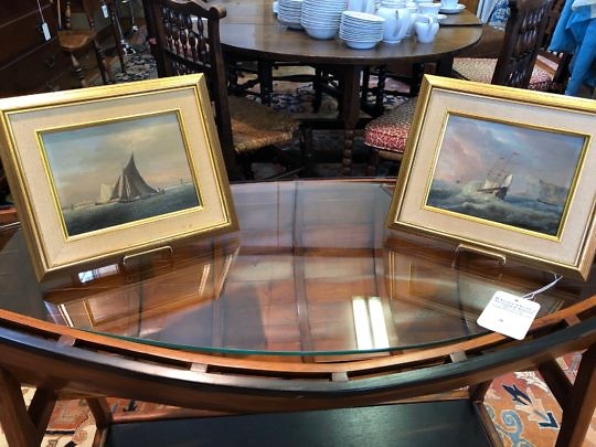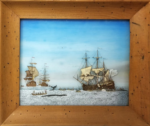 Anton Nieburg Vintage Double Reverse Painting on Glass Whaling Scene