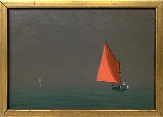 Robert Stark Jr. Oil on Canvas “Red Sail Catboat”