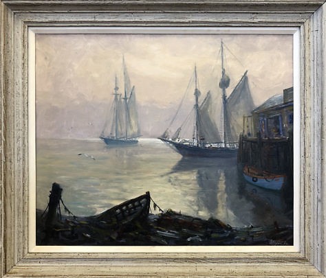 Charles Stepule Oil on Canvas “Two Sloops at Sunset”