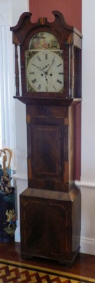 English Multi-wood Inlaid Mahogany Tall Case Clock
