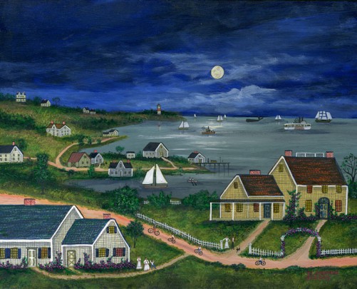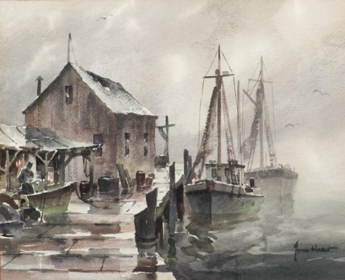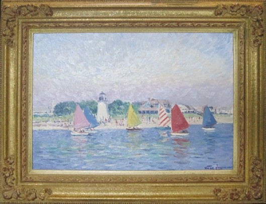 John Austin (1918-2001) “Nobska from Old North Wharf”, tempera on board