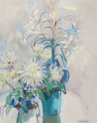 Goldsmith “Casa Blanca Lilies and Chrysanthemums” oil on canvas