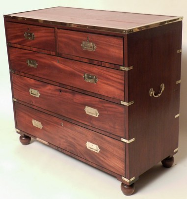 English Mahogany Brass Bound Campaign Chest of Drawers