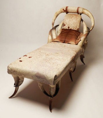 Horn and Bull Hide Upholstered Chaise Lounge