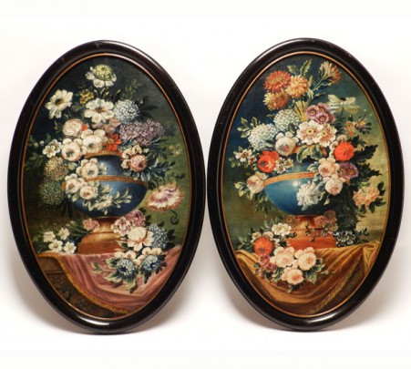 Pair of Antique Oval “Floral Still Life-“Oils on Canvas
