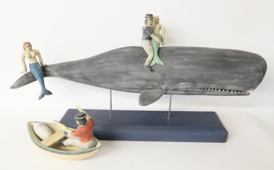 K. William Kautz “Mermaids on a Whale Courtship” Folk Art Carving
