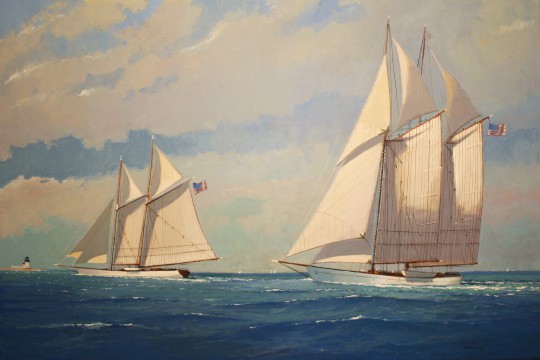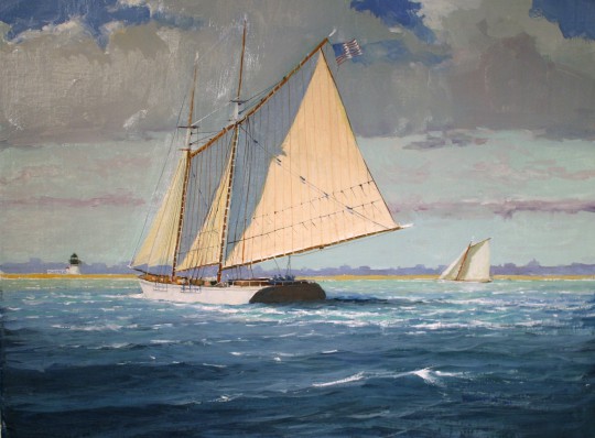 William W. Lowe Oil on Linen “Two Schooners Arriving Home”