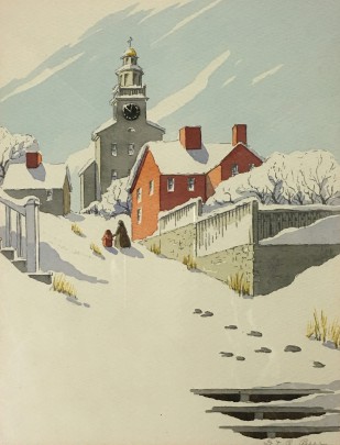 Doris and Richard Beer Watercolor on Paper “Winter on Stone Alley”