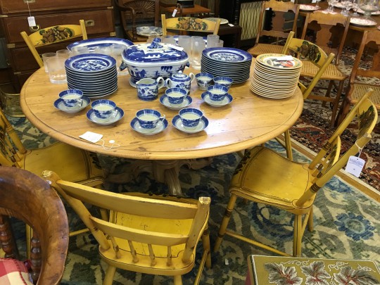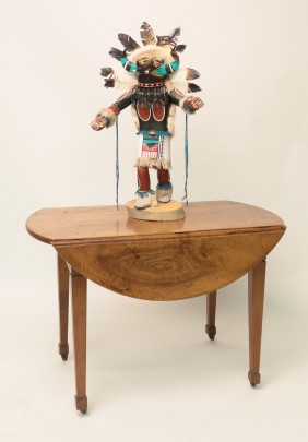 Large Contemporary Kachina Doll & French Fruitwood Drop Leaf Round Side Table