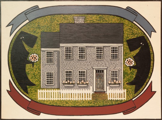 Maggie Meredith Oil on Panel “Nantucket Home and Whales”