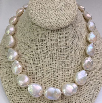 Fine 18mm – 22mm White Fresh Water Baroque Pearl Necklace