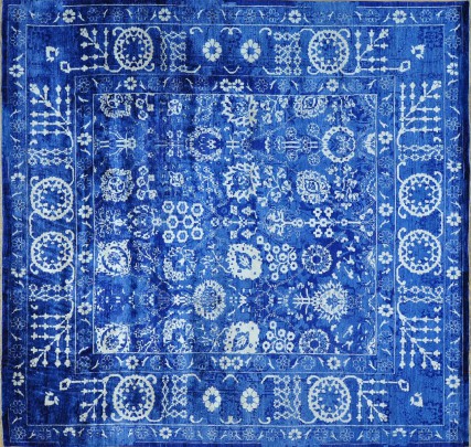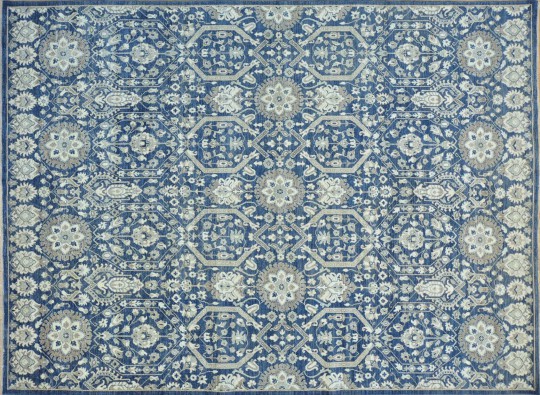 Hand Woven Square Wool and Bamboo Silk Tabriz Carpet