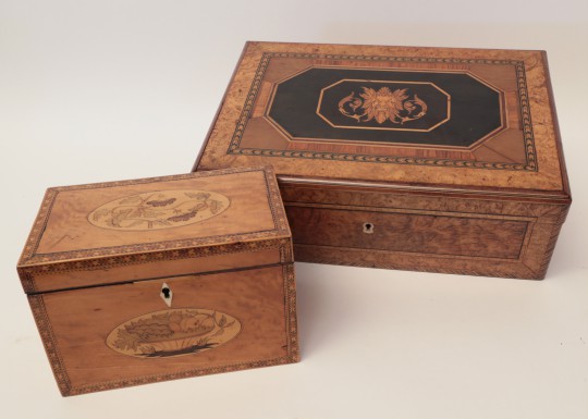 19th Century Lap Desk Box & Double Compartment Tea Caddy