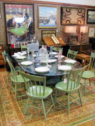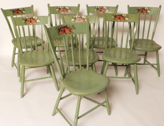 Eight Thumb-back Windsor Plank Seat Dining Chairs