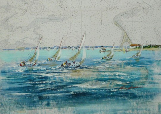 Kerry Hallam Acrylic on Nantucket Sound Chart