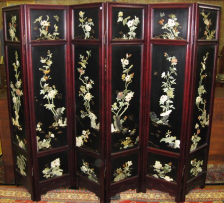 Chinese Floral Carved Hardstone Six-Panel Screen or Room Divider