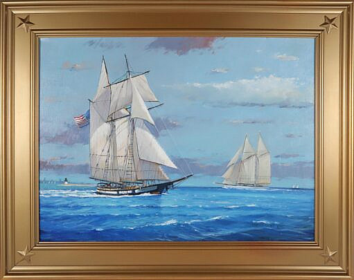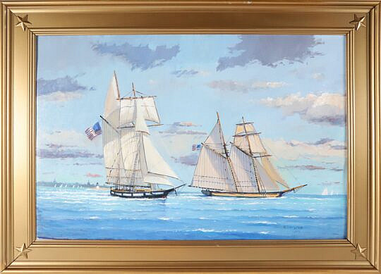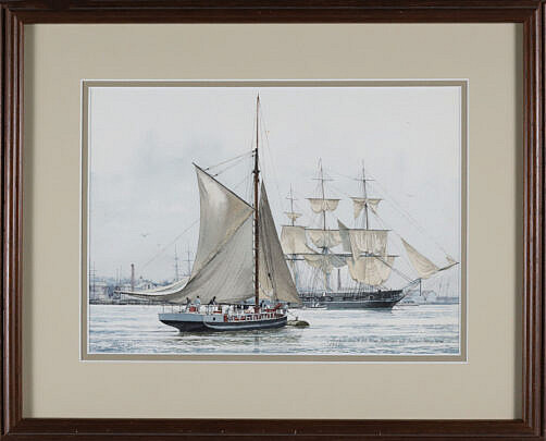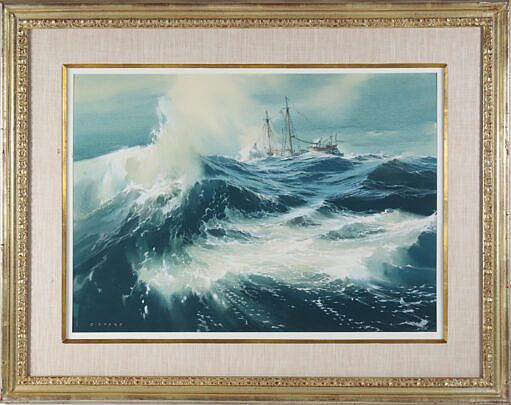 August 4, 2024 Day-2 The Marine Auction includes fine art by Robert Salmon, Wm Stubbs, Wm Gay Yorke, Wm Yorke, 3 works by Derek George Montague Gardner, Frederick Roux, Wm Edward Norton, several works by Brian Coole , Barry Mason, George Marshall, Reuben Chappell, William Macy, Arthur Diehl, and 19th c. maritime etchings. Antique scrimshaw walking sticks, coconut dippers, pie crimpers, sewing implements, cribbage board, busks, antique whale teeth, rolling pins, watch stand, etc. Logbooks, Navigational books, nautical instruments, telescopes, half hulls, quarter boards, ship’s lights and lanterns, flags, Wick Ahrens whales, ship models, Sunderland lusterware and much more. 350 lots.